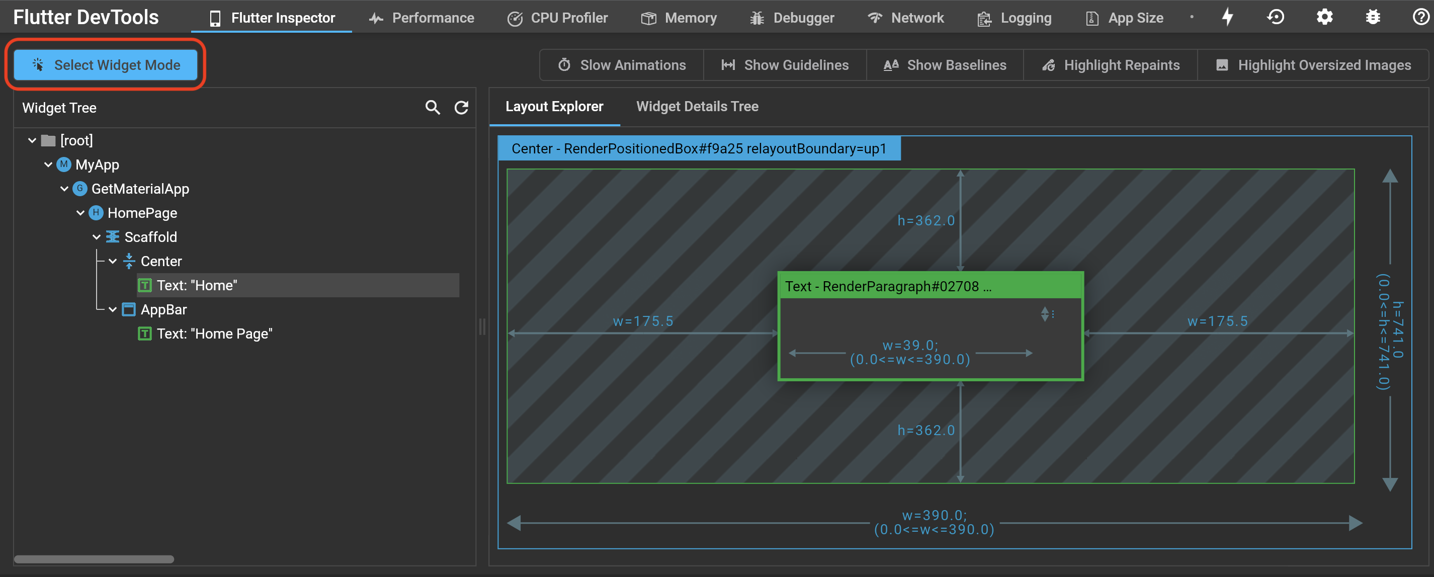 그리고 이 버튼을 눌러주면 widget tree에서 내가 누른 component가 화면에서도 표시된다.