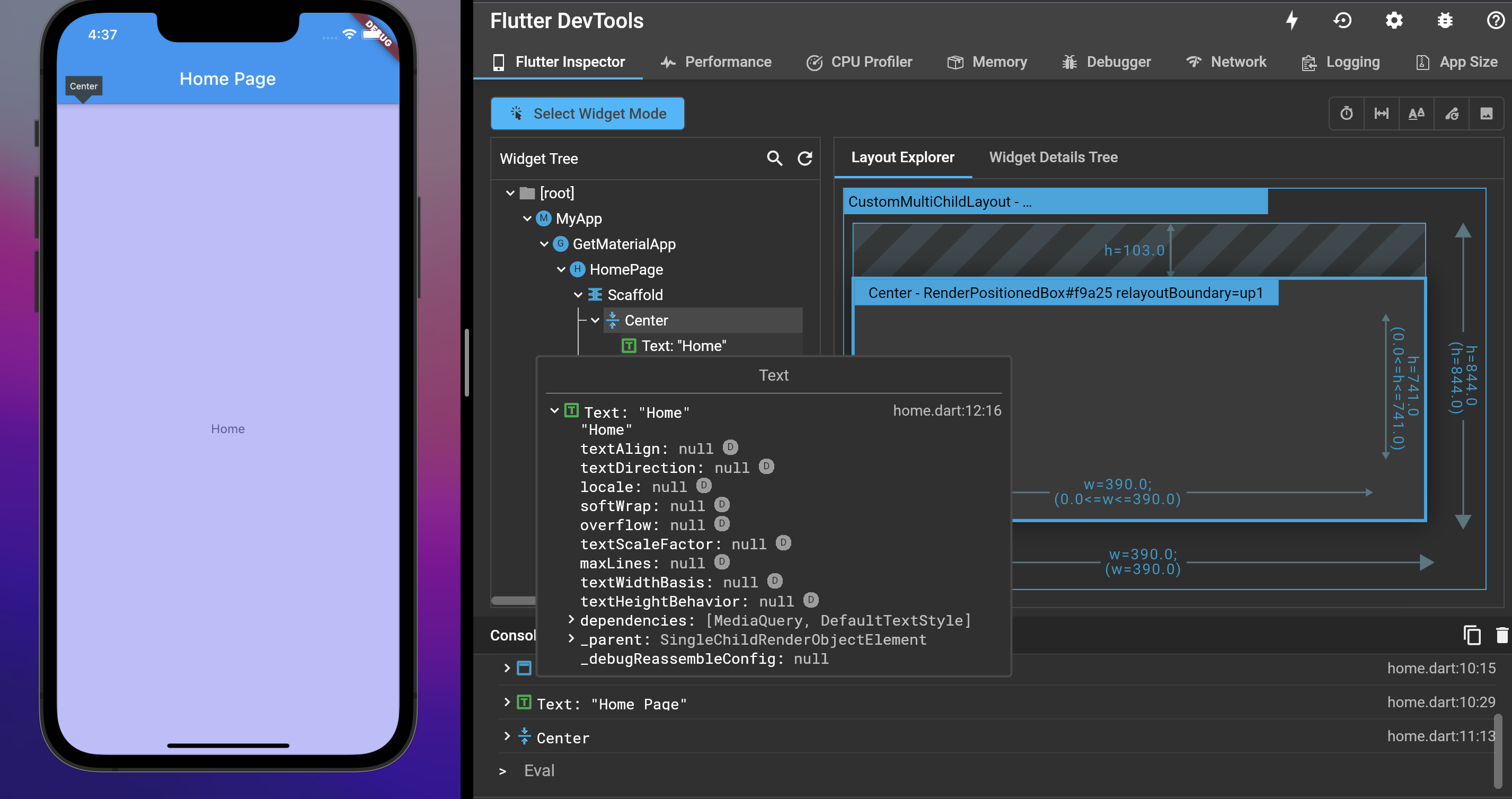 terminal에서 flutter run을 하면 다음과 같은 출력을 볼 수 있다. 여기서 맨 마지막 url에 들어가면 inspector를 볼 수 있다.